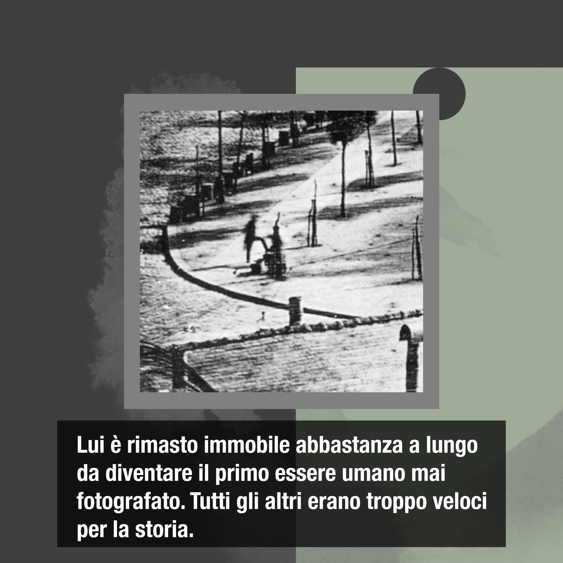 Ma poi, accade il miracolo. In un angolo, un uomo si è fermato. È lì per farsi lucidare gli stivali. È rimasto fermo, un'ancora nel fiume del tempo. Quando Daguerre sviluppa la lastra, la città sembra colpita da un incantesimo: le strade sono deserte, i palazzi immobili. E lì, in basso, quella piccola sagoma nera. Il primo essere umano 'fermato' per sempre. Non sappiamo chi fosse, ma lui è lì. Da quasi due secoli.